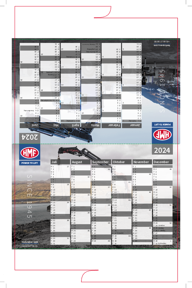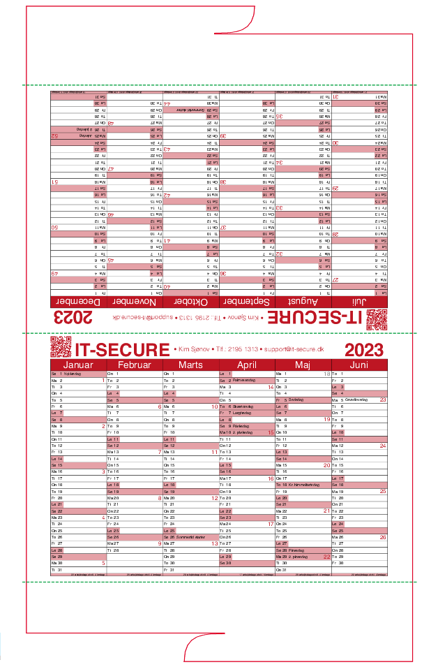 Din halvårs bordkalender er udstanset i 350 g Silk.